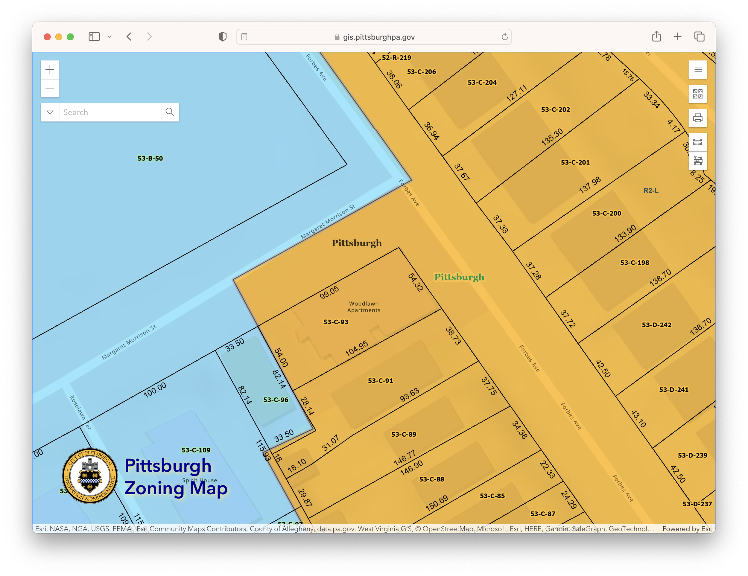 Image from Pittsburgh Zoning Map depicting the plot.